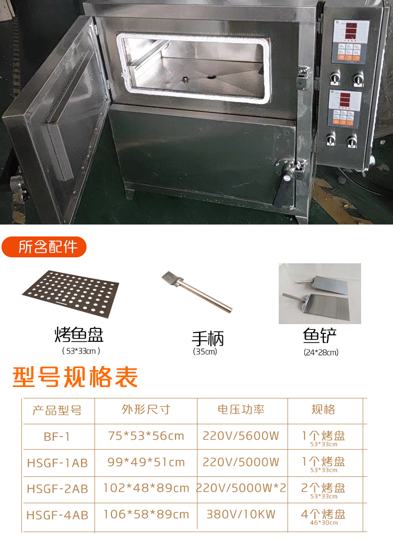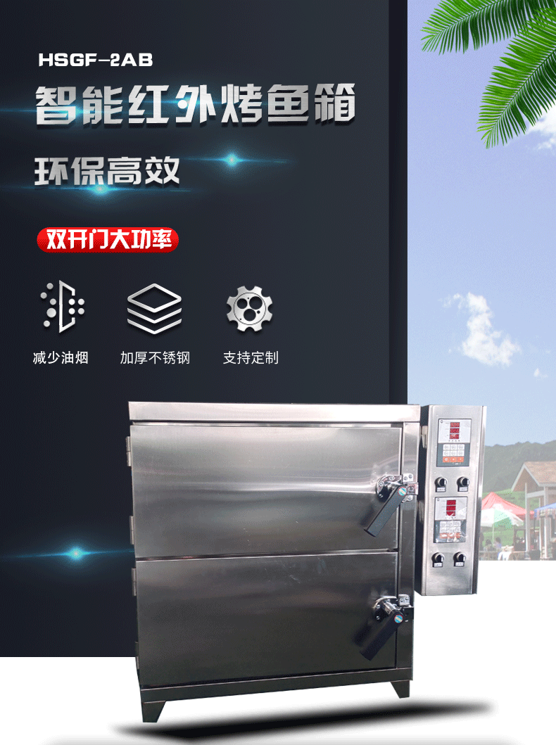 雙層雙盤烤魚箱,適合一天出魚量在四五十條魚左右的烤魚店。我公司是河南省生產(chǎn)智能紅外烤魚箱的廠家,該烤魚箱是國家專利審核過的產(chǎn)品,請大家放心訂購。此款烤魚箱不僅銷往本省區(qū)域,而且遠(yuǎn)銷上海 北京 廣州 深圳 天津 重慶 蘇州 武漢 成都 杭州 南京 青島 長沙 無錫 佛山 寧波 大連 鄭州 沈陽 煙臺 濟(jì)南 東莞 泉州 南通 唐山 鎮(zhèn)江 滄州 西安 福州 長春 合肥 濰坊 徐州 常州 溫州 紹興 濟(jì)寧 淄博 鹽城 揚州 昆明 南昌 臨沂 東營 臺州 泰州 嘉興 洛陽 廈門 金華 南寧 襄陽 宜昌 邯鄲 泰安 榆林 惠州 威海 中山 保定 吉林 南陽 德州 岳陽 太原 聊城 常德 漳州 貴陽 淮安 衡陽 茂名 濱州 蕪湖 湛江 菏澤 柳州 株洲 許昌 江門 咸陽 周口 廊坊 湖州 宿遷等城市。恒晟牌烤魚箱典型客戶:小城漁家,魚貴人,魚酷,魚派,食客沸騰,巫山烤魚,烤功夫,諸葛烤魚,三國烤魚,萬州烤魚,重慶烤魚,七公江湖燒烤等。