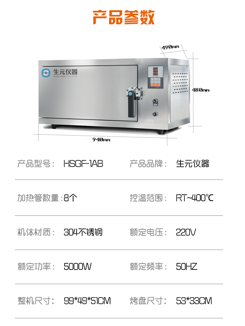 4,加熱管:采用特殊定制的石英加熱管,升溫快,溫度高,干凈衛生,易清潔,使用壽命長!